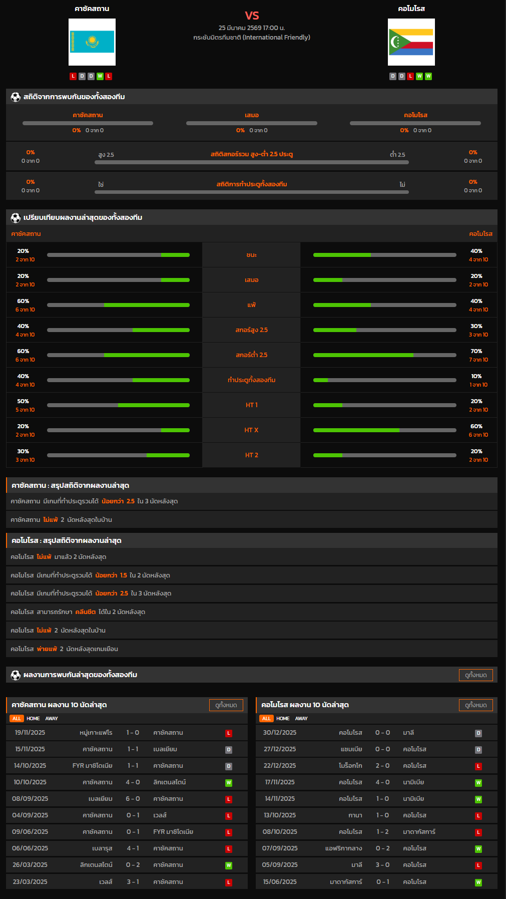 วิเคราะห์บอล กระชับมิตรทีมชาติ 2025-26 คาซัคสถาน VS คอโมโรส