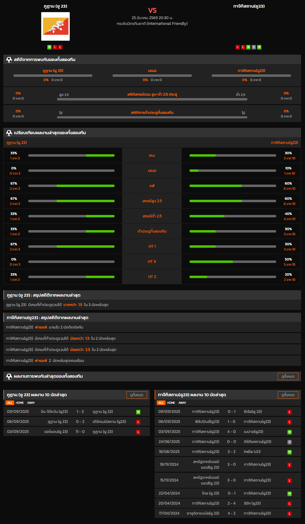 วิเคราะห์บอล กระชับมิตรทีมชาติ 2025-26 ภูฏาน (ยู 23) VS ทาจิกิสถาน(ยู23)
