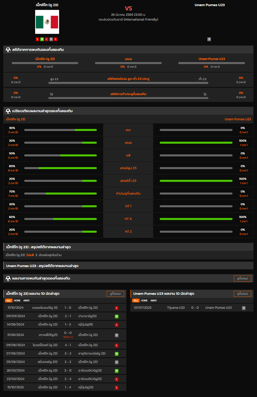 วิเคราะห์บอล กระชับมิตรทีมชาติ 2026 เม็กซิโก (ยู 23) VS Unam Pumas U23