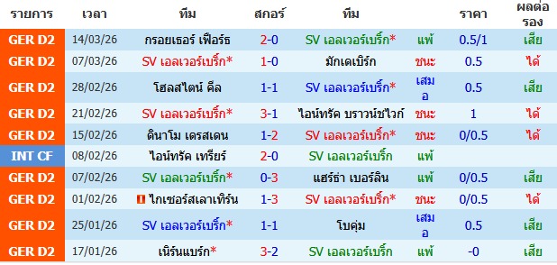 ผลงาน 10 นัดหลังสุดของทีม เอลเวอร์เบริ์ก