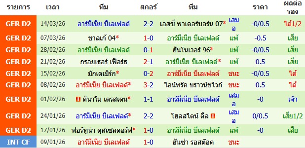 ผลงาน 10 นัดหลังสุดของทีม อาร์มีเนีย บีเลเฟลด์