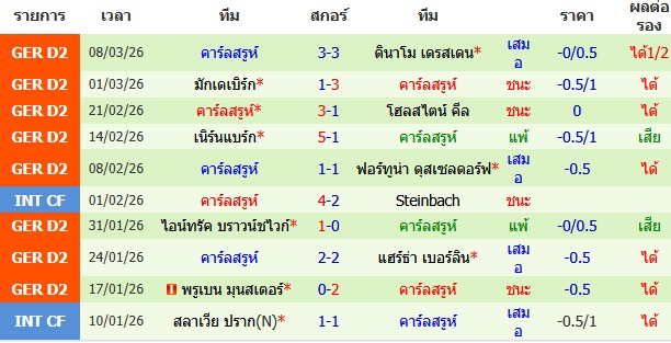 ผลงาน 10 นัดหลังสุดของทีม คาร์ลสรูห์