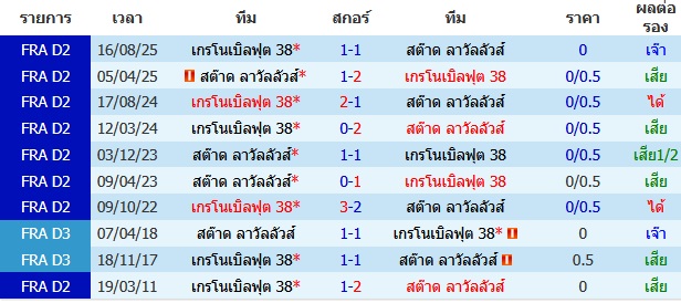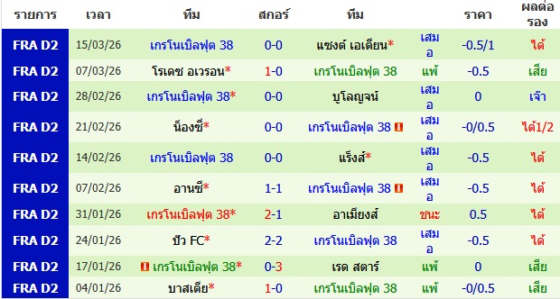 ผลงาน 10 นัดหลังสุดของทีม เกรโนเบิลฟุต 38