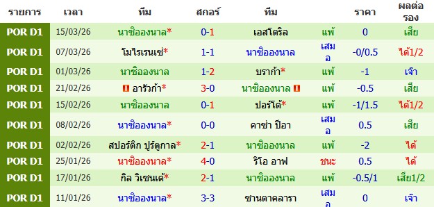 ผลงาน 10 นัดหลังสุดของทีม นาซิอองนาล
