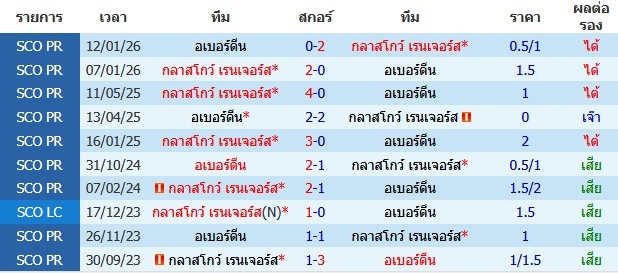 กลาสโกว์ เรนเจอร์ส VS อเบอร์ดีน
