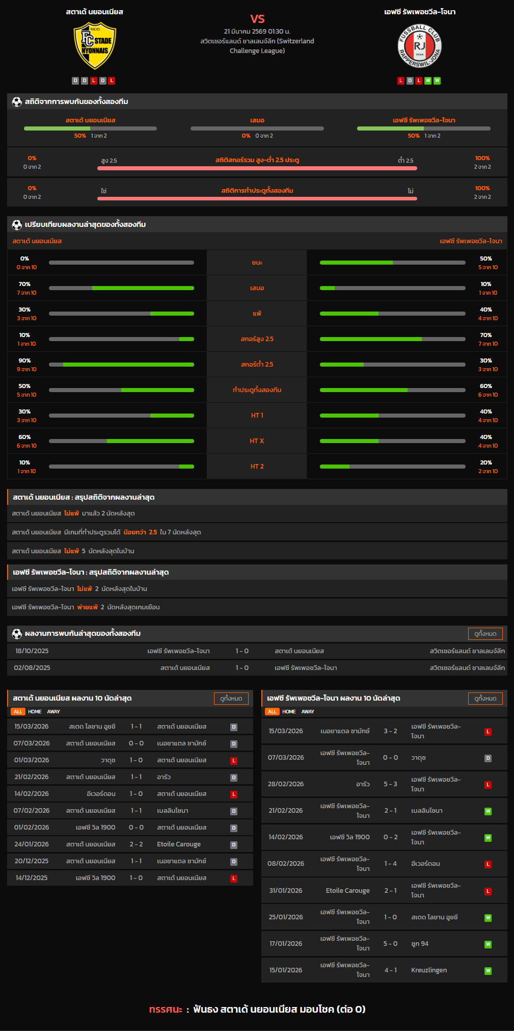 วิเคราะห์บอล สวิตเซอร์แลนด์ ดิวิชั่น 2 2025-26 สตาเด้ นยอนเนียส VS เอฟซี รัพเพอชวีล-โจนา