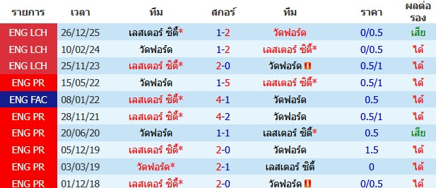 ผลงาน 10 นัดหลังสุดของทีม เลสเตอร์ ซิตี้