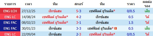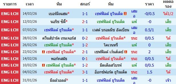 ผลงาน 10 นัดหลังสุดของทีม เชฟฟิลด์ ยูไนเต็ด