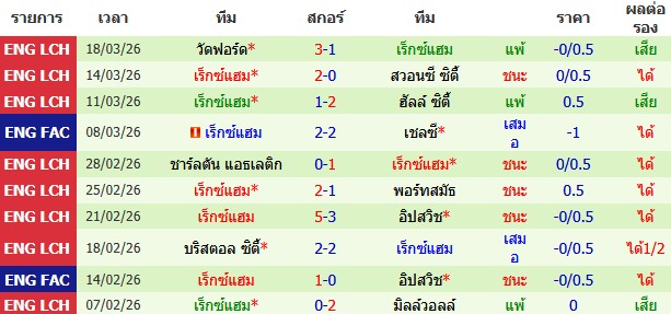 ผลงาน 10 นัดหลังสุดของทีม เร็กซ์แฮม