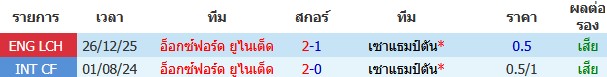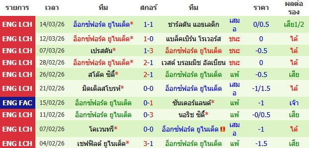 ผลงาน 10 นัดหลังสุดของทีม อ็อกซ์ฟอร์ด ยูไนเต็ด