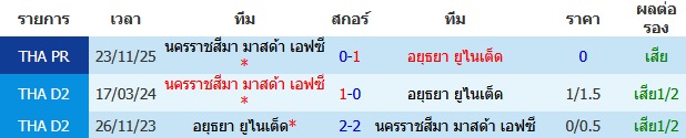 ราคาบอล : อยุธยา ยูไนเต็ด ต่อ 0.5/1