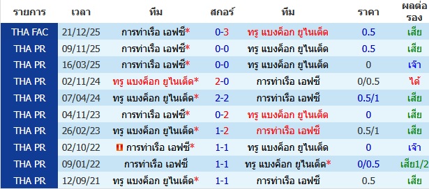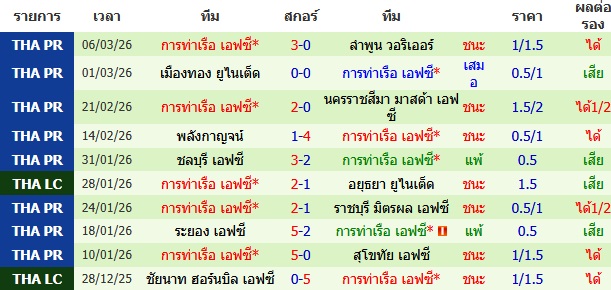 ผลงาน 10 นัดหลังสุดของทีม การท่าเรือ เอฟซี
