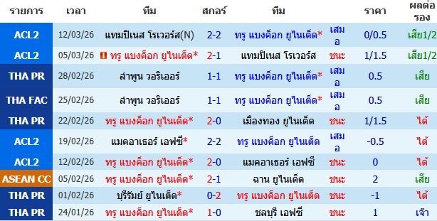 ผลงาน 10 นัดหลังสุดของทีม แบงค็อก ยูไนเต็ด