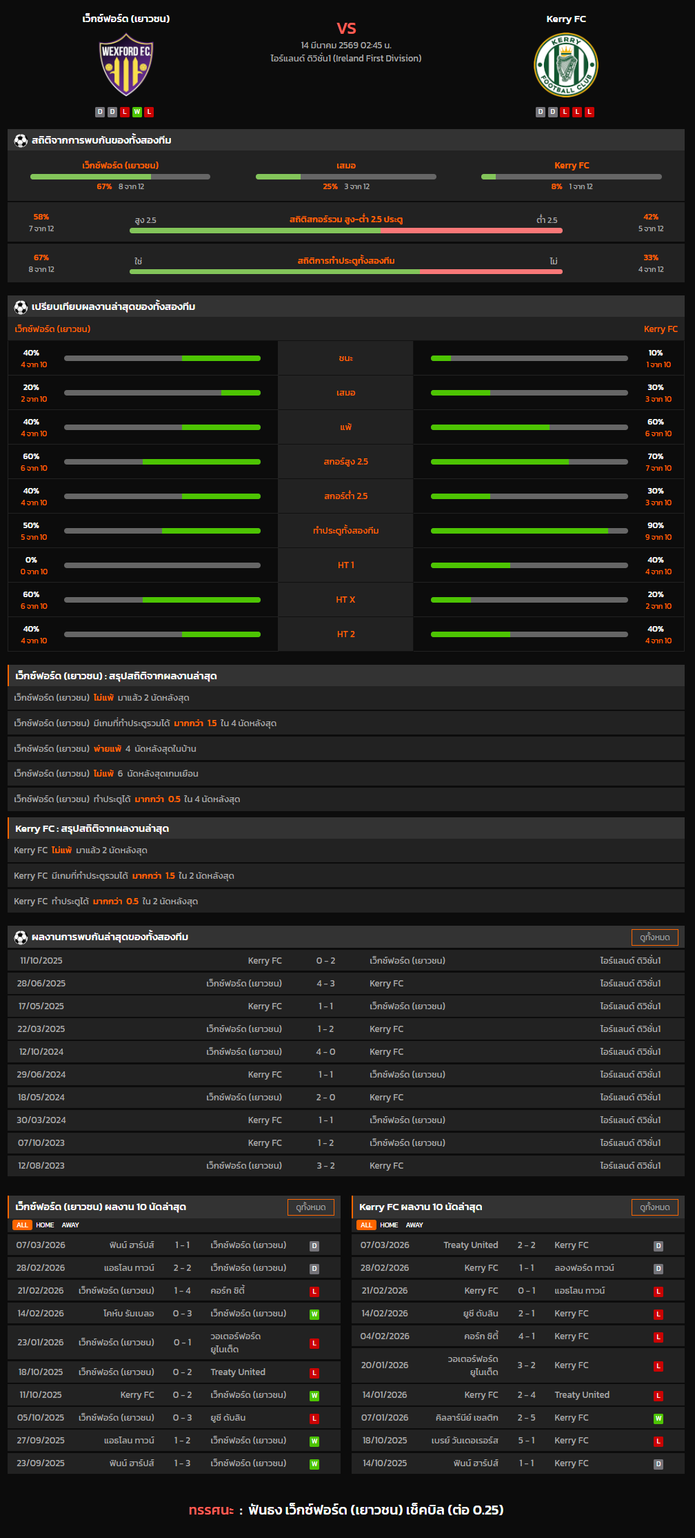 วิเคราะห์บอล ไอร์แลนด์ ดิวิชั่น 1 2025-26 เว็กซ์ฟอร์ด (เยาวชน) VS Kerry FC