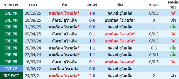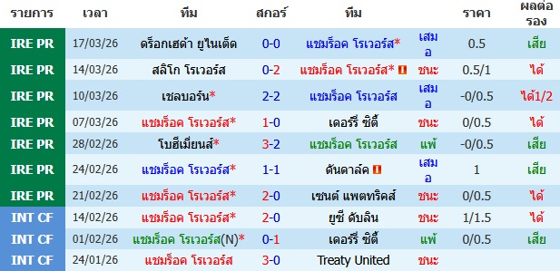 ผลงาน 10 นัดหลังสุดของทีม แชมร็อค โรเวอร์ส