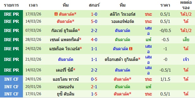 ผลงาน 10 นัดหลังสุดของทีม ดันดาล์ค