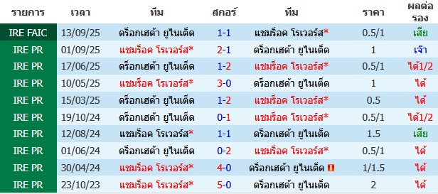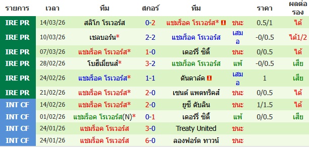 ผลงาน 10 นัดหลังสุดของทีม แชมร็อค โรเวอร์ส
