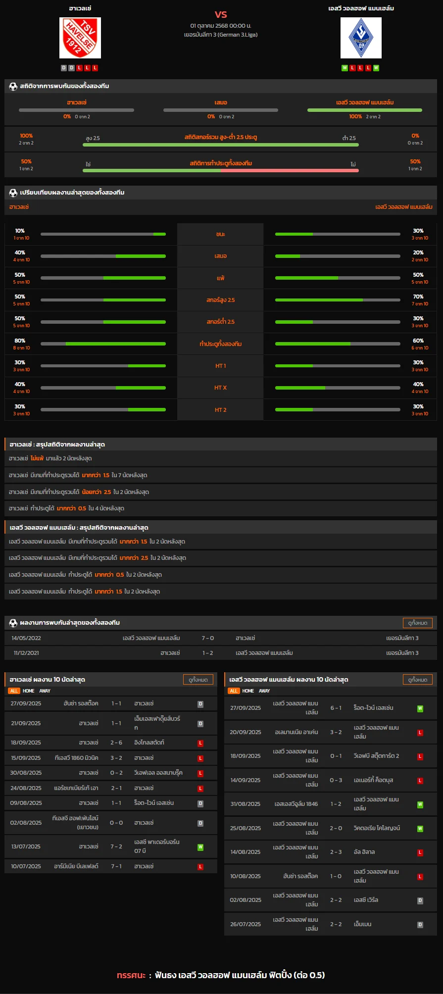 วิเคราะห์บอล [ เยอรมันลีกา 3 2025-26 ] ฮาเวลเซ่ VS เอสวี วอลฮอฟ แมนเฮล์ม