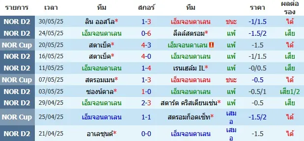 วิเคราะห์บอล [ นอร์เวย์ ดิวิชั่น 2 2025 ] เอ็มจอนดาเลน VS โมสส์