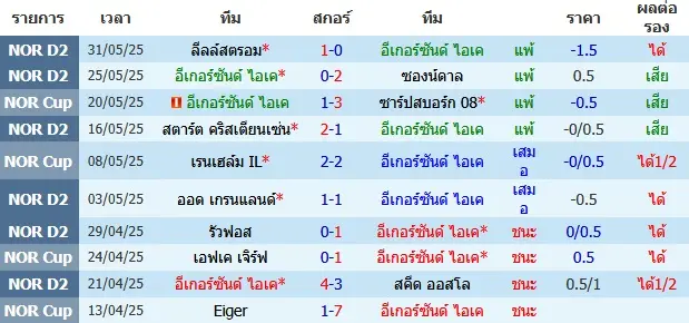 ผลงาน 10 นัดหมายหลังสุดของกลุ่ม อีเกอร์ซันด์ ไอเค