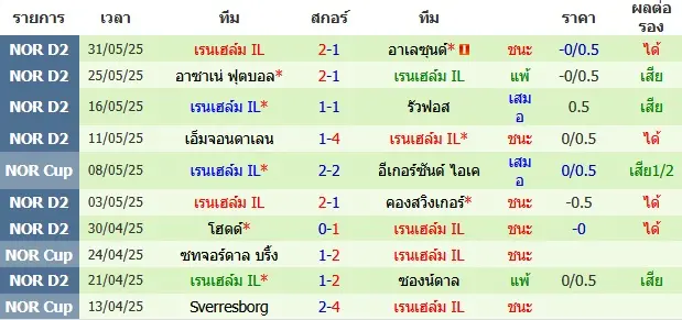 ผลงาน 10 นัดหมายหลังสุดของกลุ่ม เรนเฮล์ม