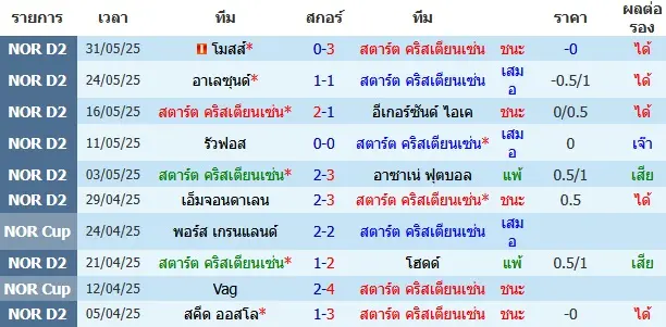 ผลงาน 10 นัดหมายหลังสุดของกลุ่ม สตาร์ต คริสเตียนบวงสรวง
