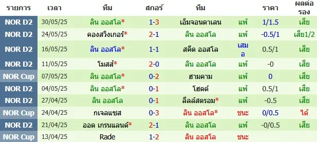ผลงาน 10 นัดหมายหลังสุดของกลุ่ม ลิน ออสโล