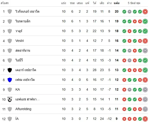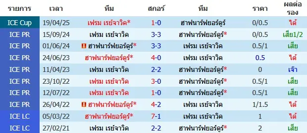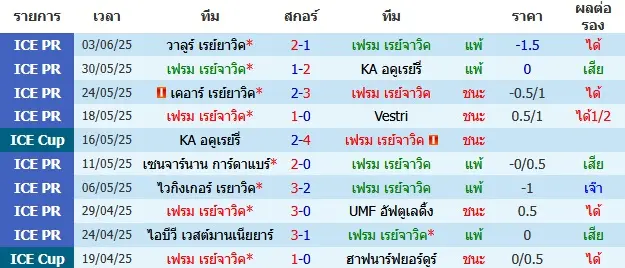 ผลงาน 10 นัดหมายหลังสุดของกลุ่ม เฟรม เรย์จาวิค