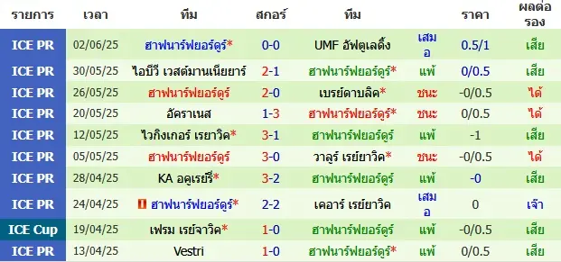 ราคาบอล : ฮาฟท้องนาร์ฟยอร์มองร์ ต่อ 0/0.5